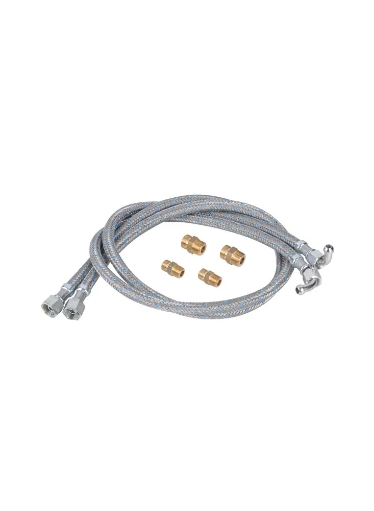 Kit flexibles fioul universel - 2 flexibles coudés diamètre 8 longueur 1000 1/4" F coudé 3/8" F droit - 2 raccords 1/4" conique 1/4" plat - 2 raccords 3/8" conique 1/4" plat
